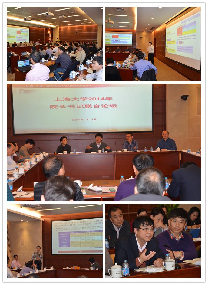 为贯彻落实学校第二次党代会提出的战略目标和任务要求,全面推进建设高水平大学的发展部署,着力加强基层单位主动对接学校发展战略能力,2014年“书记院长联合论坛”于3月18日下午在校本部乐乎新楼思源厅成功举办。本期论坛由材料学院承办,校领导于信汇、罗宏杰、李友梅,各学院(系统)党委、直属党总支书记,学院院长以及相关职能部处负责人应邀参加了论坛。论坛由校党委常委、校长助理、组织部长徐旭主持。